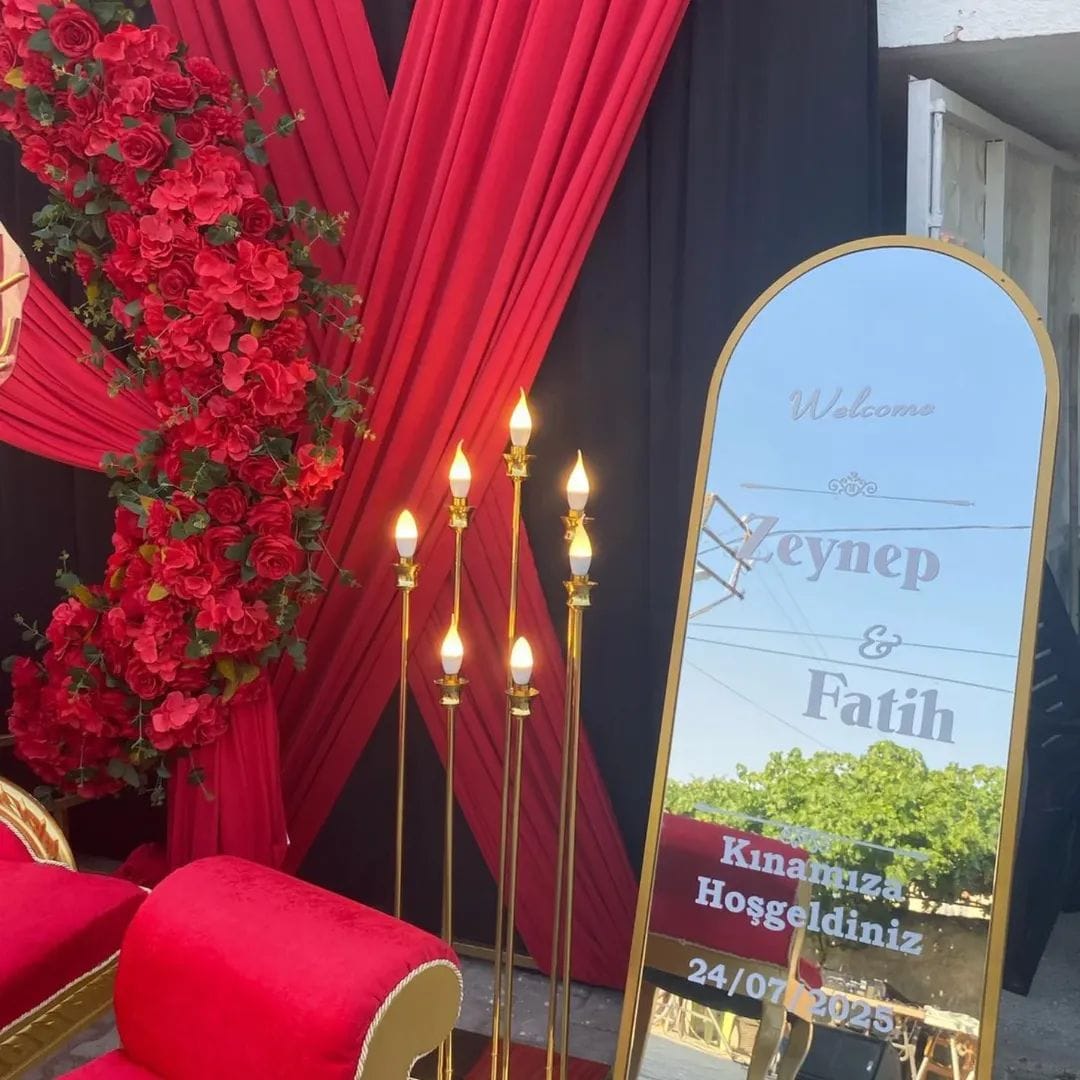 Klasik Osmanlı konseptlerinden bohem tarzlara, kırmızı alt tonlu geleneksel süslemelerden pastel modern konseptlere kadar geniş bir yelpazede hizmet sunuyoruz. Renk uyumları, masa düzenleri, giriş tagları, arka fon panoları ve kına tahtı detayları tamamen sizin tercihlerinize göre planlanır.